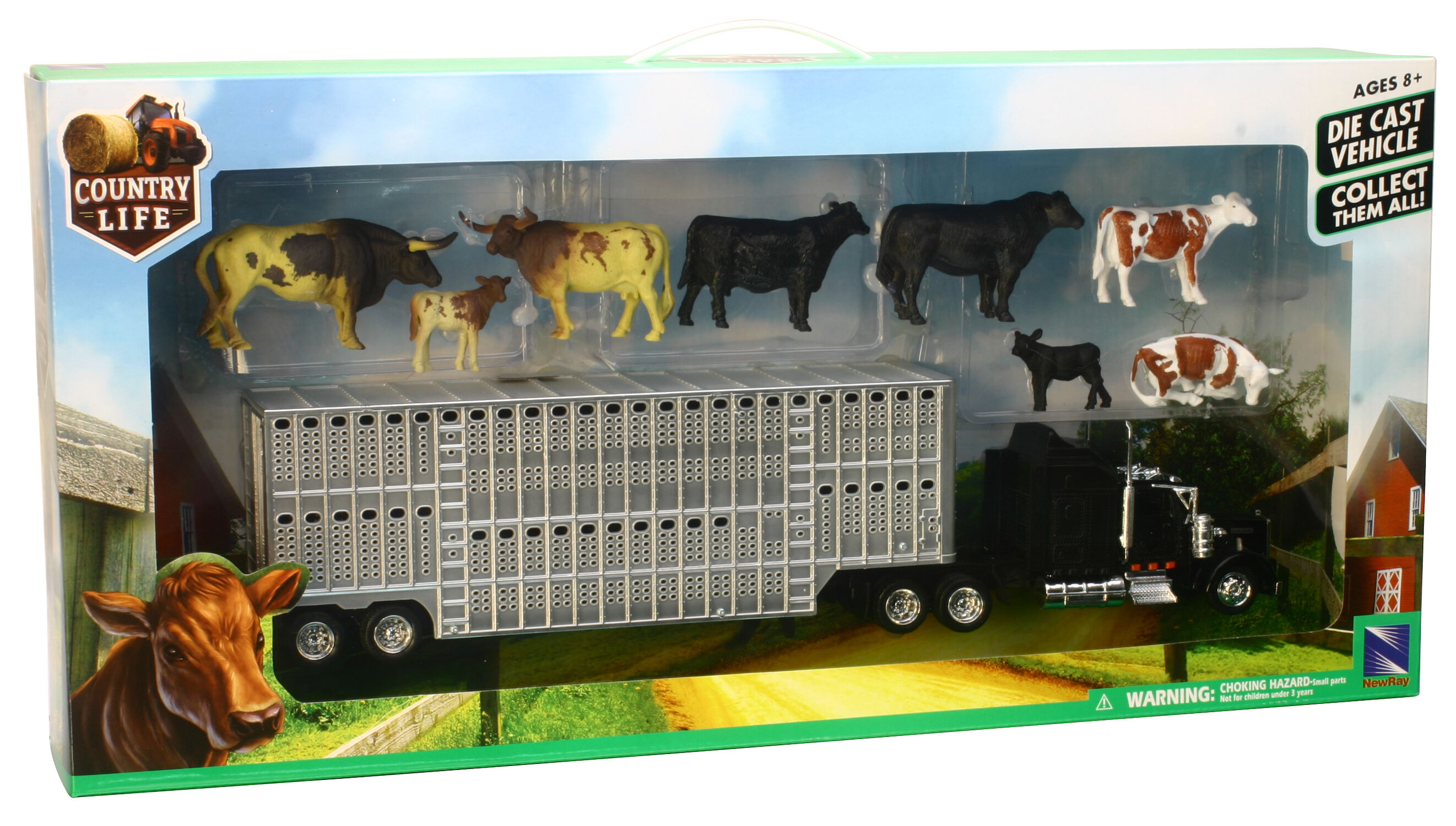 - 1:43 Kenworth die cast semi cab with chrome livestock hauling trailer