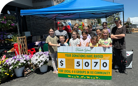 You can donate whenever you visit your local store. Shop and head to the checkout. Once your card terminal has reached your transaction total, it will ask if you’d like to round up to the nearest dollar. Just select “yes.” Those funds will then go to your local 4-H group(s).