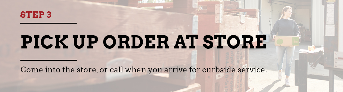 When collecting a Curbside Pickup, we may ask you to pull around to the Breezeway depending on the size of your order for a complimentary load-out.