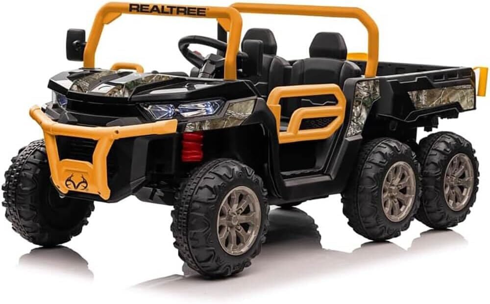 - Immerse young adventurers aged 3 and up in the thrill of exploration with the Licensed Realtree UTV 1000 (Dump Truck) 12V, featuring a striking Black/Orange design