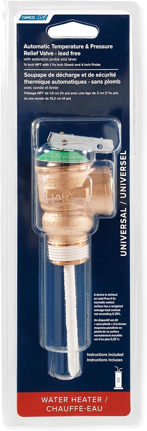 Camco Leaf-Free Automatic Temperature & Pressure Relief Valve With Extension, 3/4-In NPT x 4-In