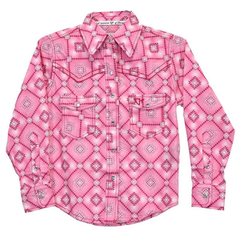 Cowgirl Hardware Girl's Long Sleeve Diamond Aztec Western Shirt