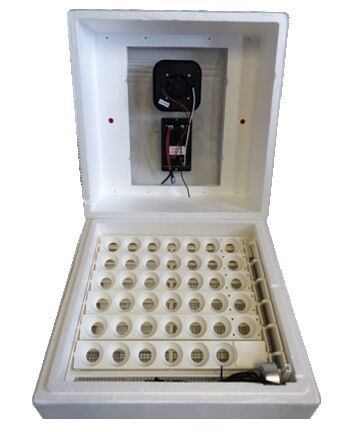 - Digital display shows temperature, humidity, and days to hatch