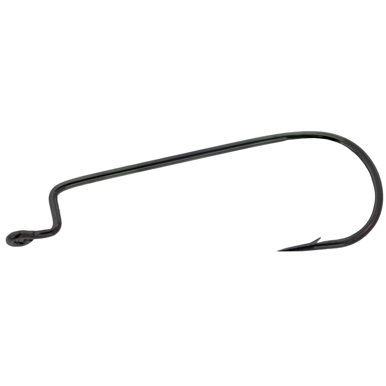 - The shoulder on the hook's shank lets anglers keep their soft plastics weedless