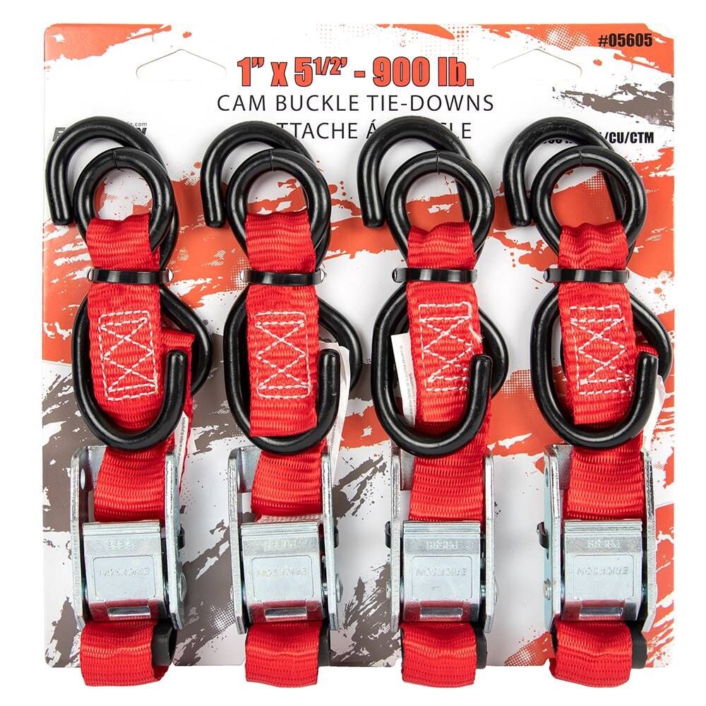 Erickson Cam Buckle Tie-Downs, 1-In x 5-1/2-In, 900-Lb, 4-Pk