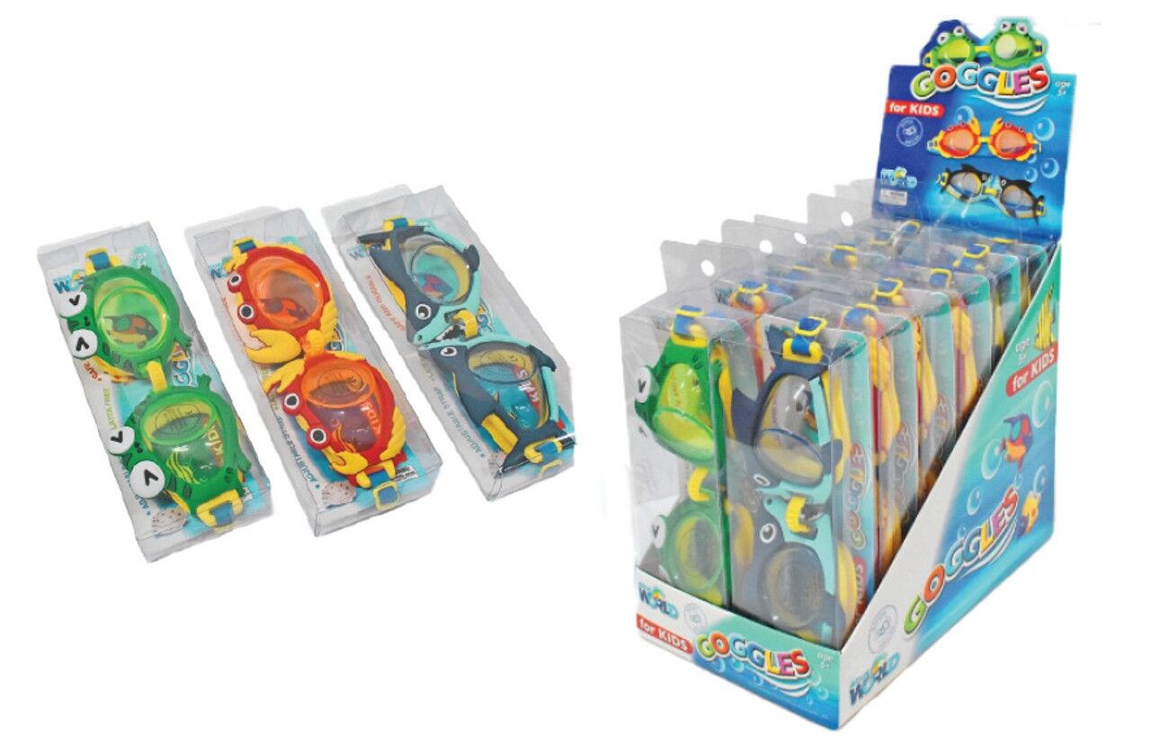 - Assorted character swimming goggles with an adjustable strap