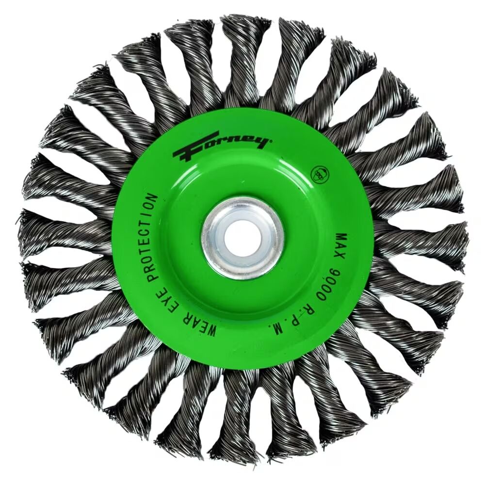 - Twist knot wire wheel brushes provide high-impact action