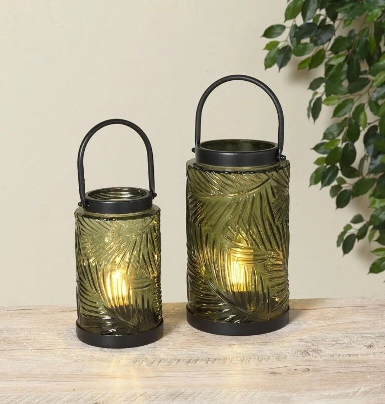 Gerson Green Glass LED Lantern, 2-Pk