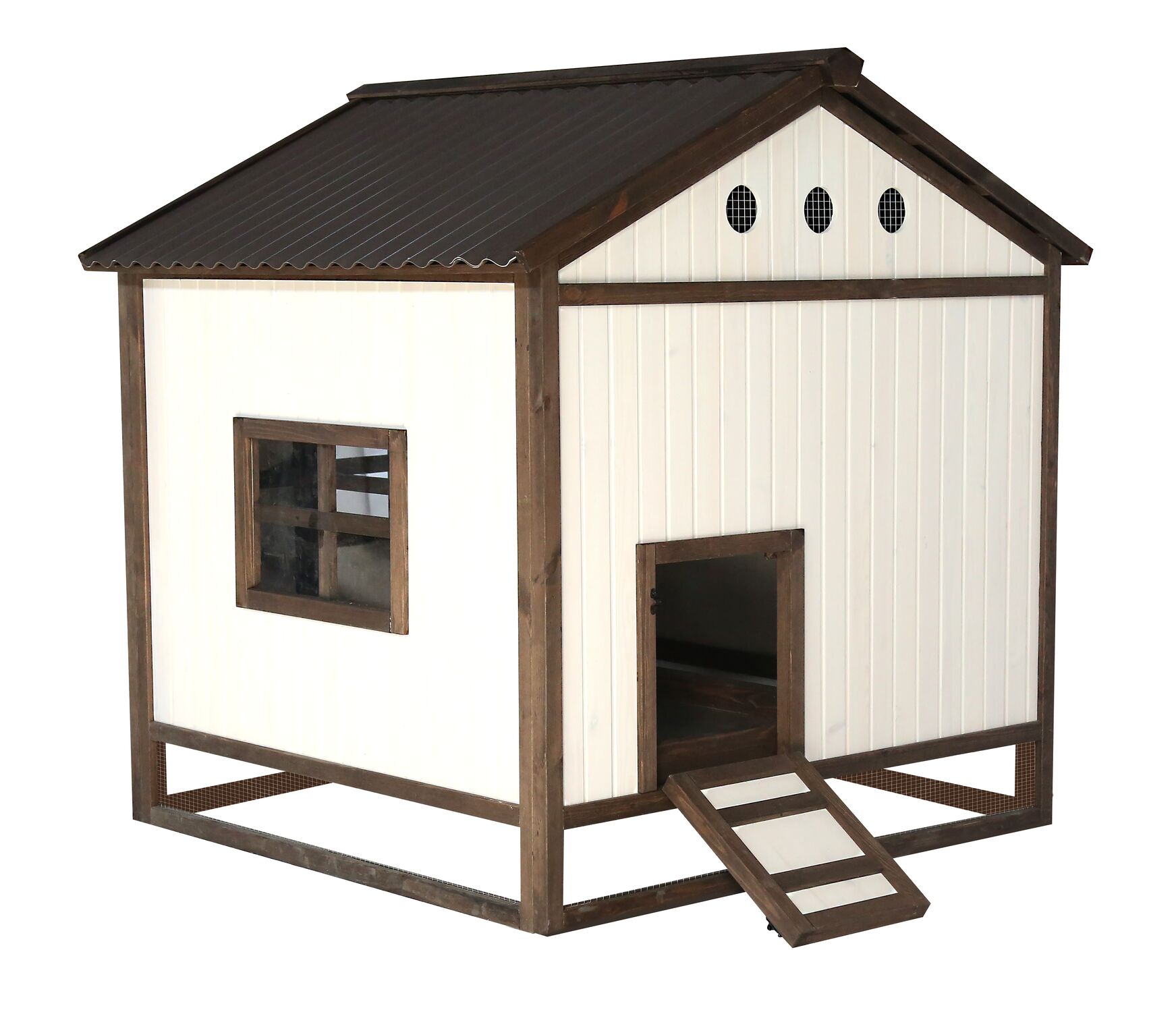 - 3 roof covered nesting boxes & 2 interior roosting bars