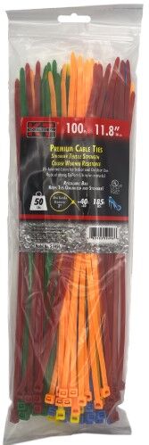 KT Industries Assorted Color Standard Duty Premium Cable Ties 11.8-In, 100-Pk