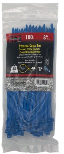 KT Industries Blue Standard Duty Premium Cable Ties, 8-In, 100-Pk