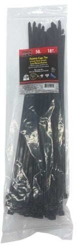 KT Industries UV Black Heavy Duty Premium Cable Ties, 18-In, 50-Pk