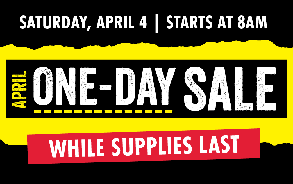 These savings are for one day only while supplies last—so shop early for the best selection! Doors open at 8AM.