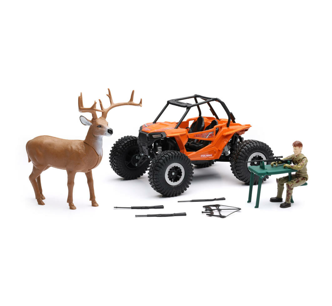 - Accessories include rifles, bows and articulated wildlife to help set out on an exciting hunting adventure