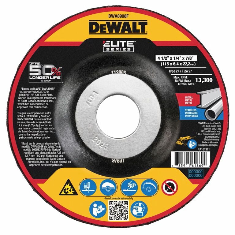 DEWALT Elite Series Grinding Wheel Type 27, 4 1/2-In x 1/4-In x 7/8-In