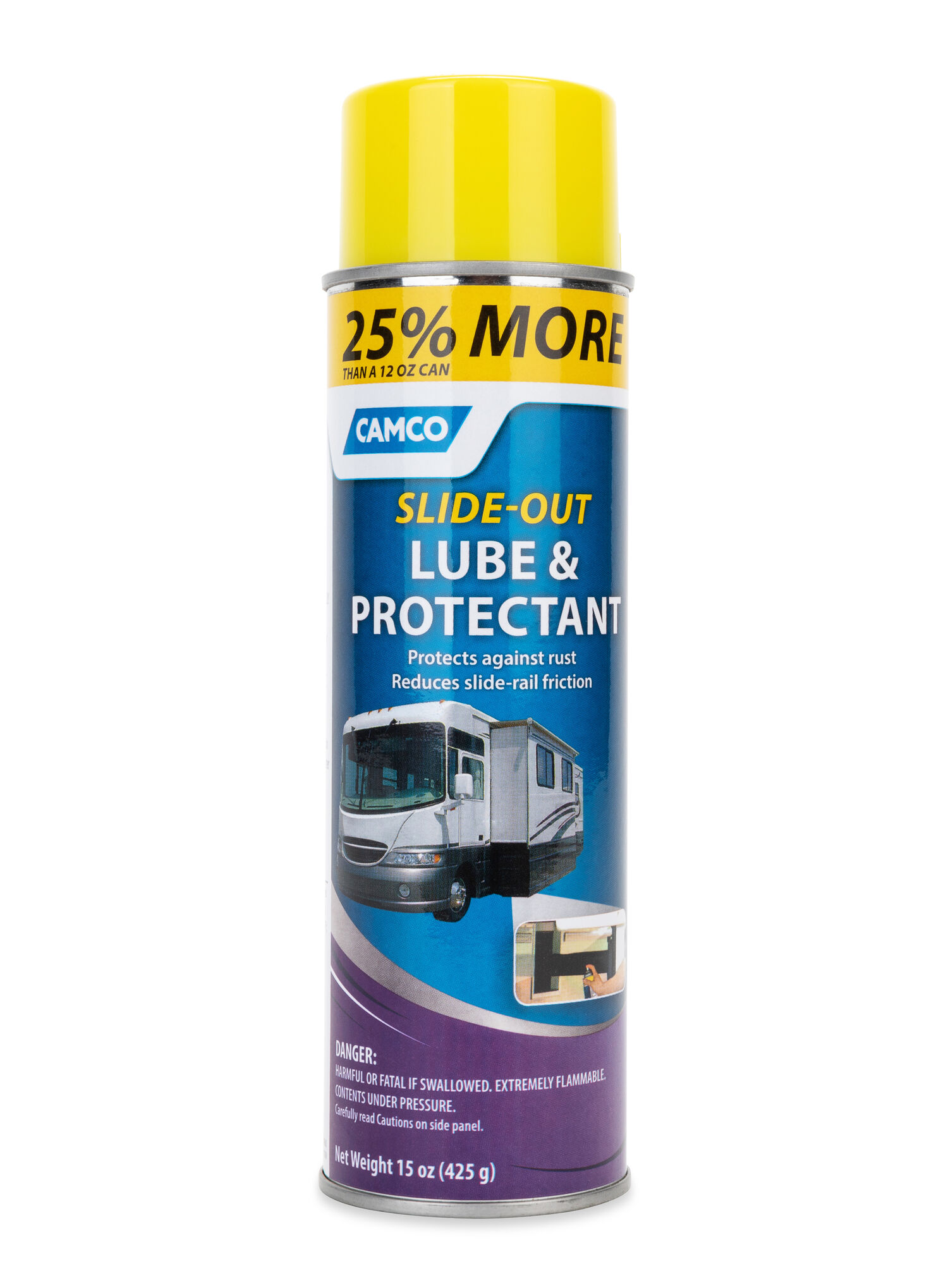 • RV Slide Out Lube and Protectant: Helps protect and maintain your RV's slide-out; Lubricates and prevents corrosion on undercarriage parts, marine fittings and trailer hitches