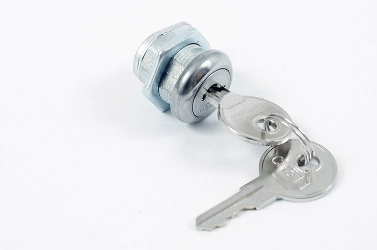 - Simply unscrew the existing lock cylinder, pop out, insert and align new lock cylinder, and attach with new screw nut