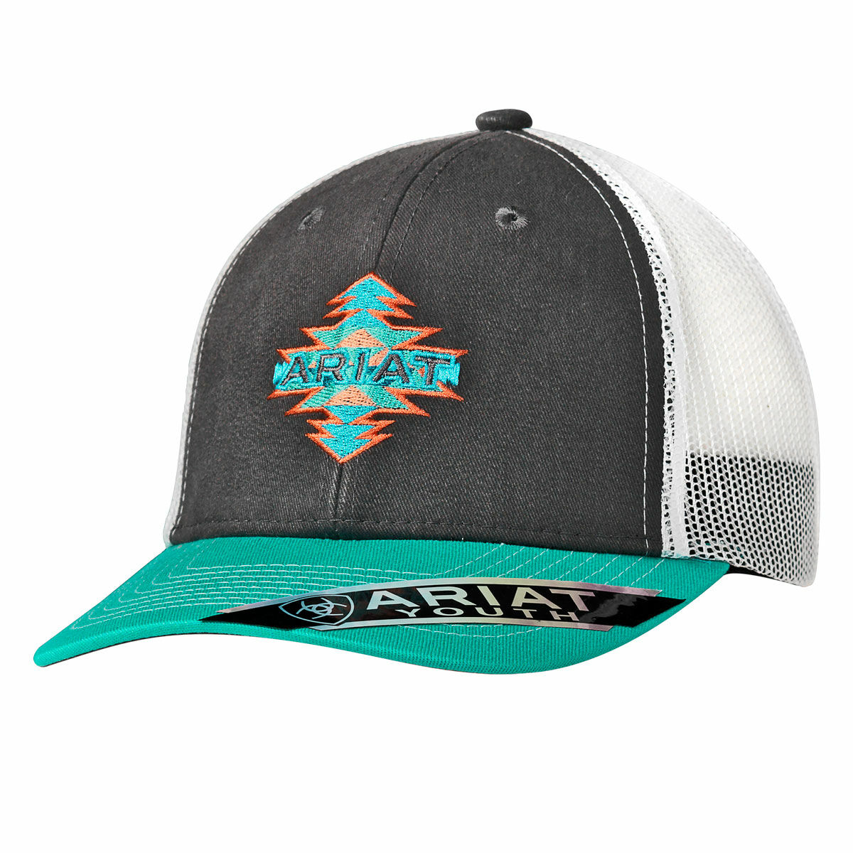 - Ariat Signature Logo on Front in an Aztec Design