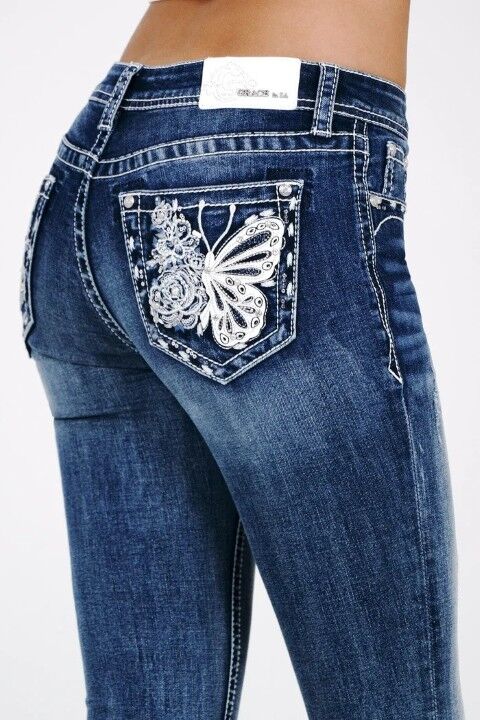 Grace In LA Girl's Butterfly Embroidered Mid Rise Bootcut Jean