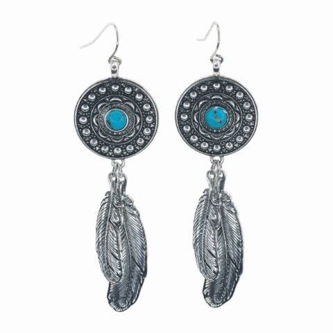• Pendant With Faux Turquoise Stone And Feather Charms