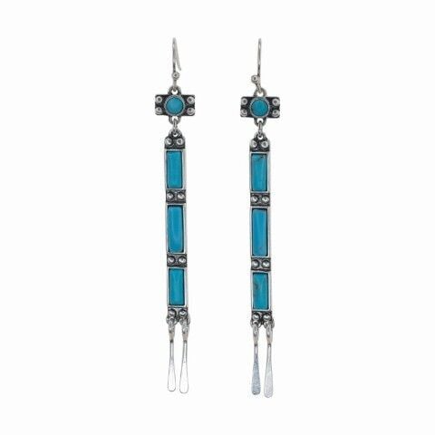 • Vertical Bar With Faux Turquoise Stones And Dangle