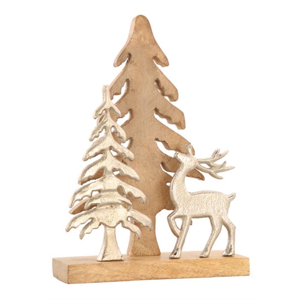 Young's Inc Wood & Metal Tree with Reindeer Tabletop