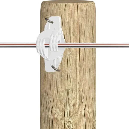 Gallagher White HD Wood Post Wide Jaw Pinlock Electric Fence Insulator, 25-Pk