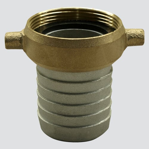 - The female coupling has a brass pin lug nut for easy tightening by hand or with a spanner wrench.