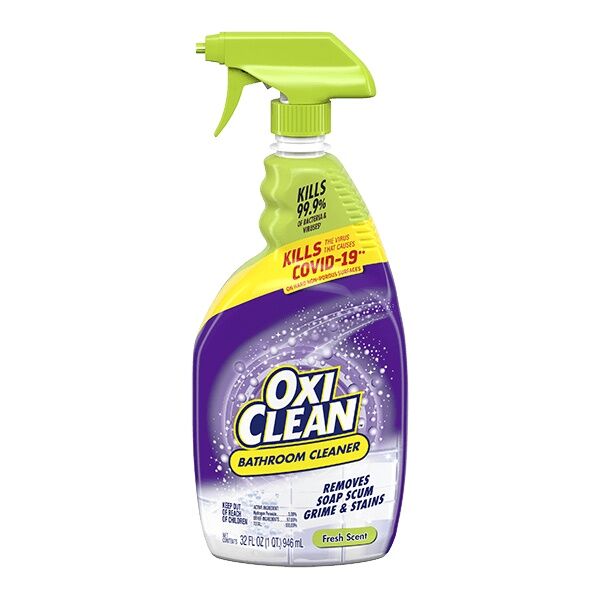 - OxiClean™ Bathroom Cleaner does the hard work for you