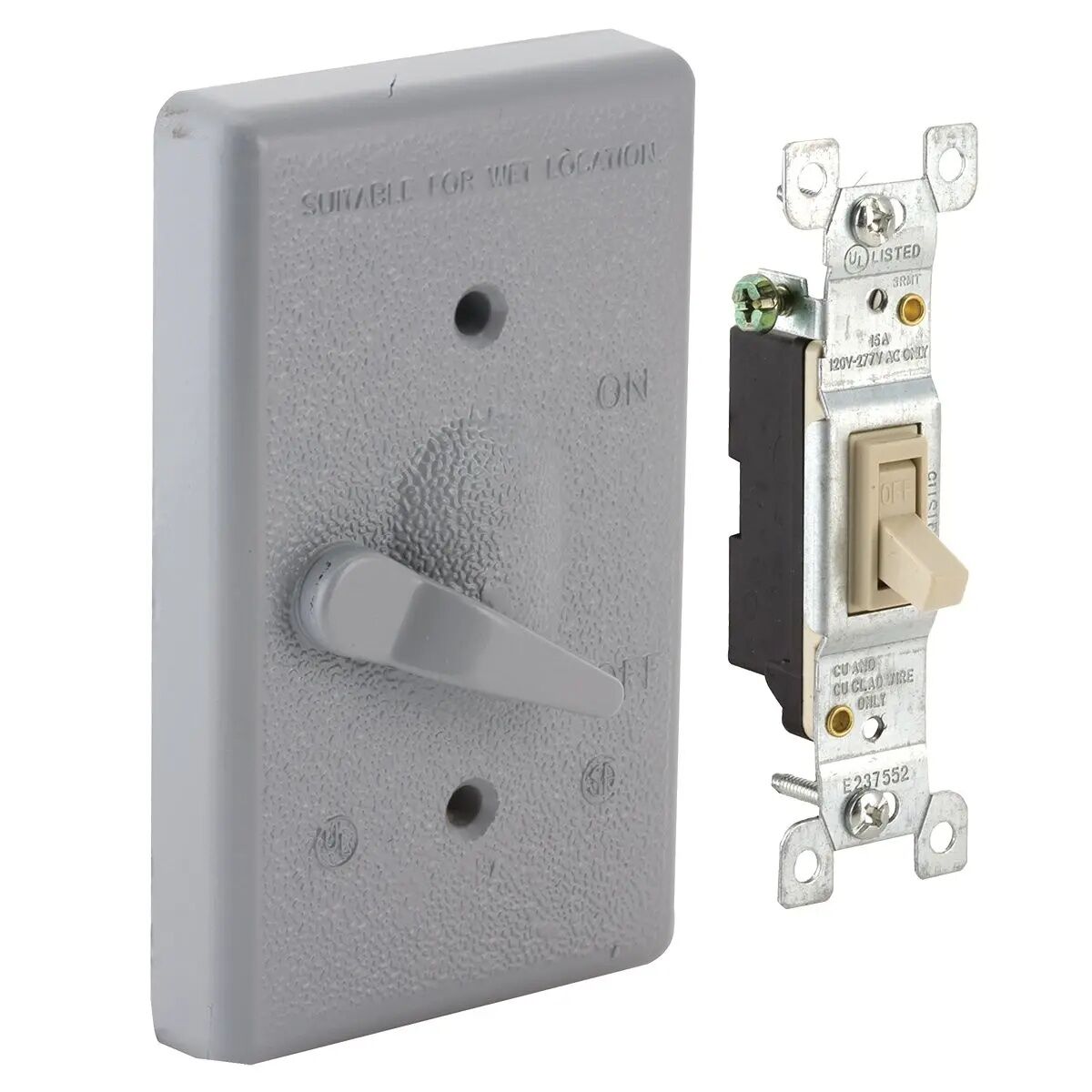 Bell Outdoor 1-Gang Gray Vertical Weatherproof 1-Pole Toggle Cover With Switch, 15-A, 125-V