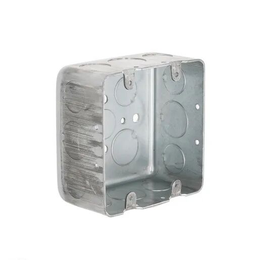 Raco 4-In Square Box, 2-Device Switch Box, Drawn, 2-1/8 In Deep, Eleven 1/2-In & Six 3/4-In KO's