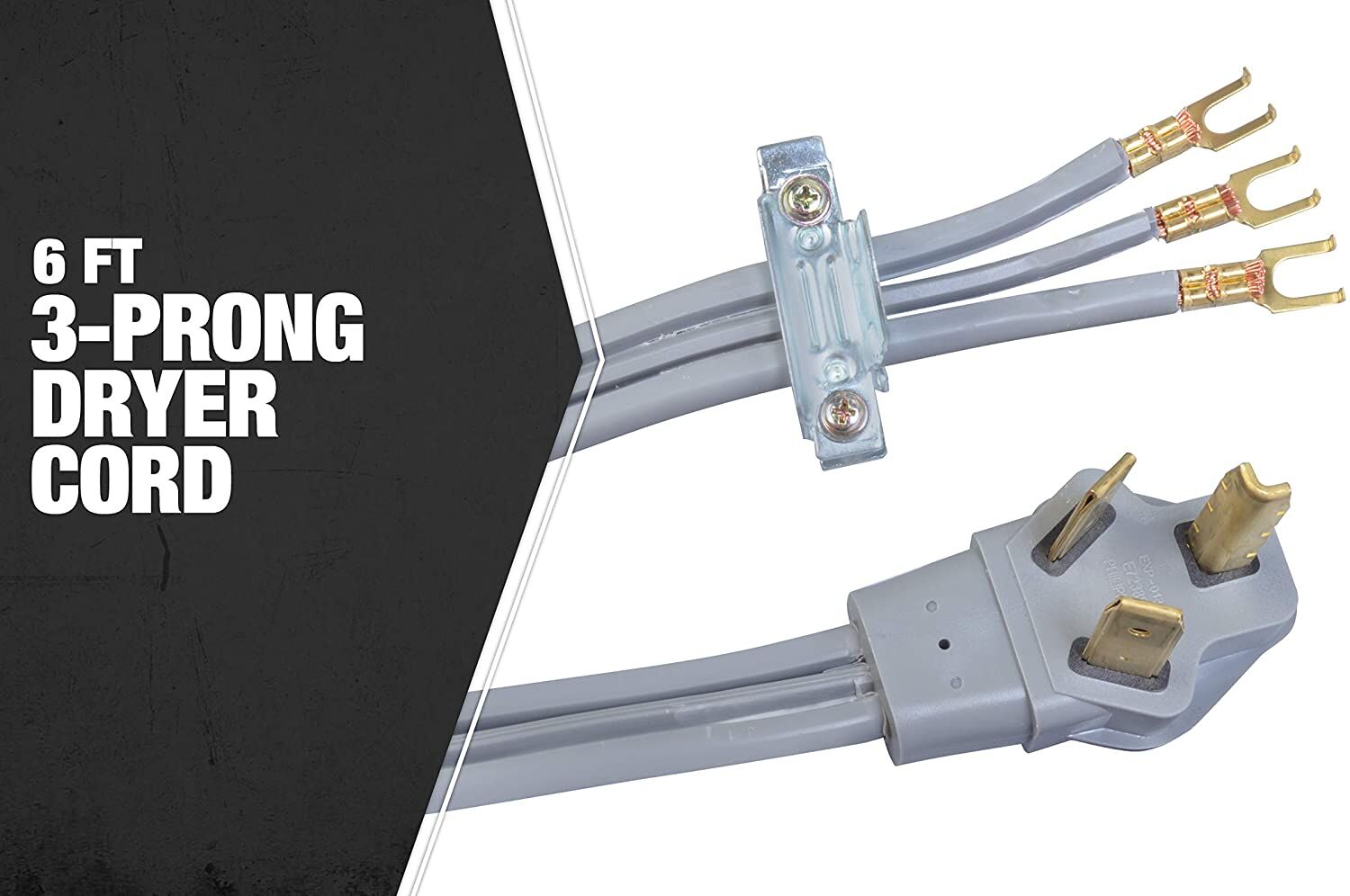 - 6 foot, 3 Wire dryer replacement power supply cord with copper wire conductors