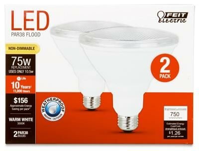 Feit Electric 2 Pack 10.5W Par38 Light Bulb