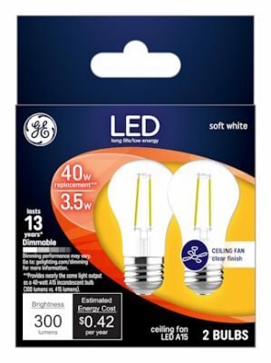 GE 300 Lumen Soft White Dimmable Ceiling Fan LED Light Bulbs, 3.5-Watt, 2-Pk