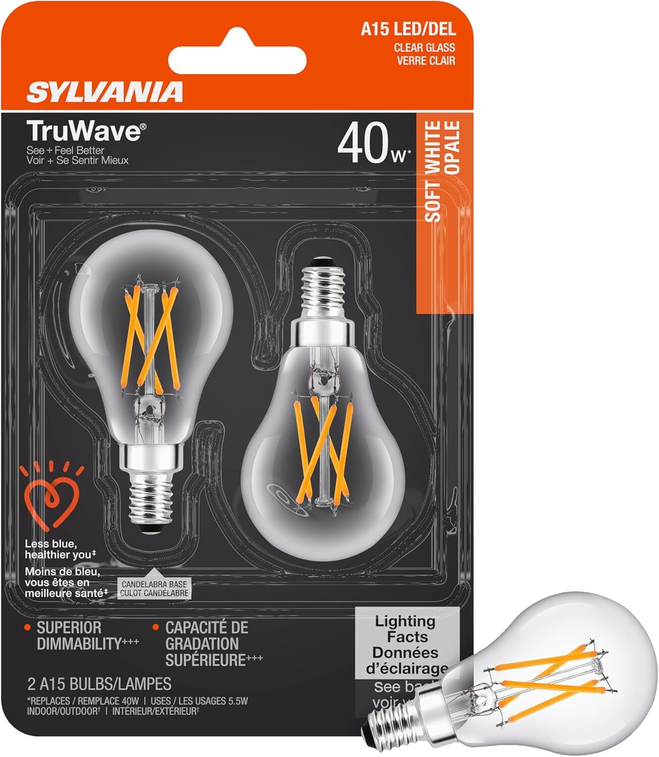 Sylvania TruWave A15 5.5 Watt Soft White Dimmable E12 LED Light Bulb, 2-Pk