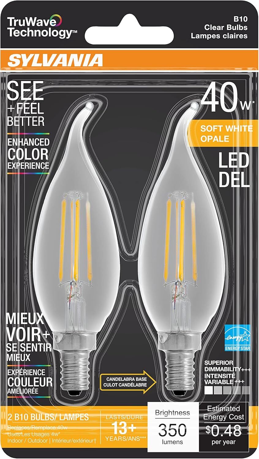 Sylvania TruWave Natural Series B10 4 Watt Soft White Opal Dimmable LED Light Bulb, 2-Pk
