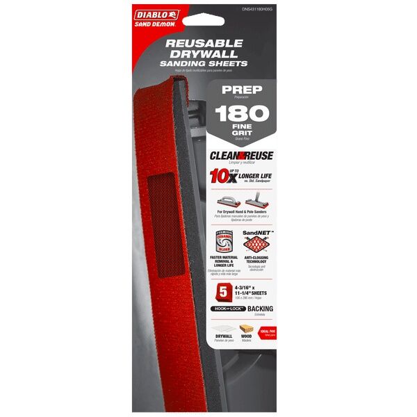 Diablo 180-Grit 4 3/16 X 11 1/4-In Sand Demon Reusable Drywall Sanding Sheet, 5-Pk