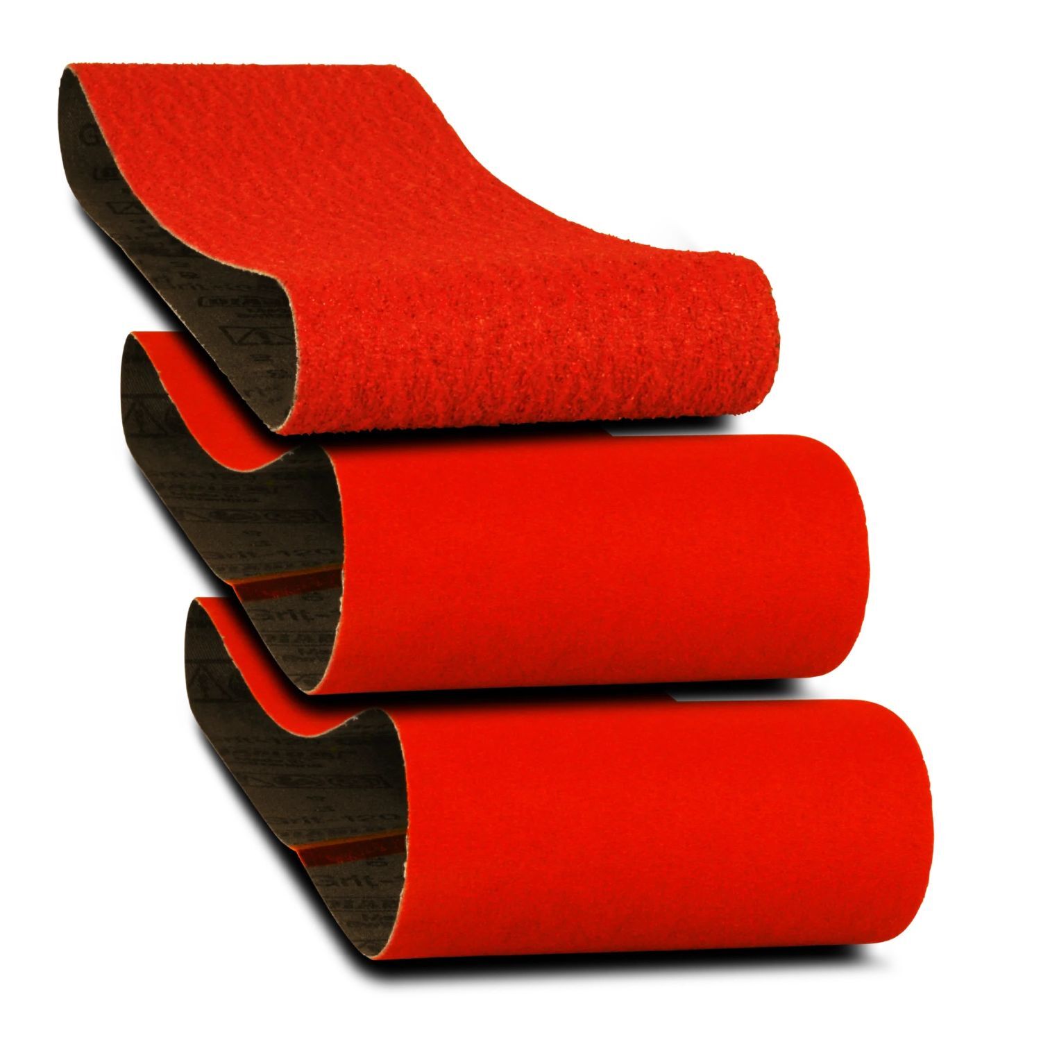 • 3-Belt Variety Pack: (1) 50-grit (coarse/removal) (1) 80-grit (medium/prep), and (1) 120-grit (fine/final prep)