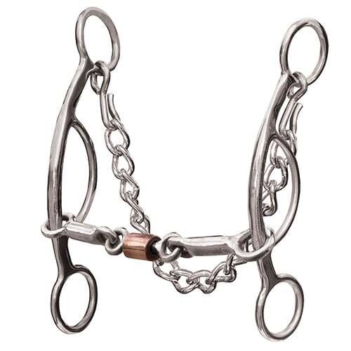 - The three piece smooth dog-bone with a copper roller mouthpiece is comfortable as it lies across the tongue