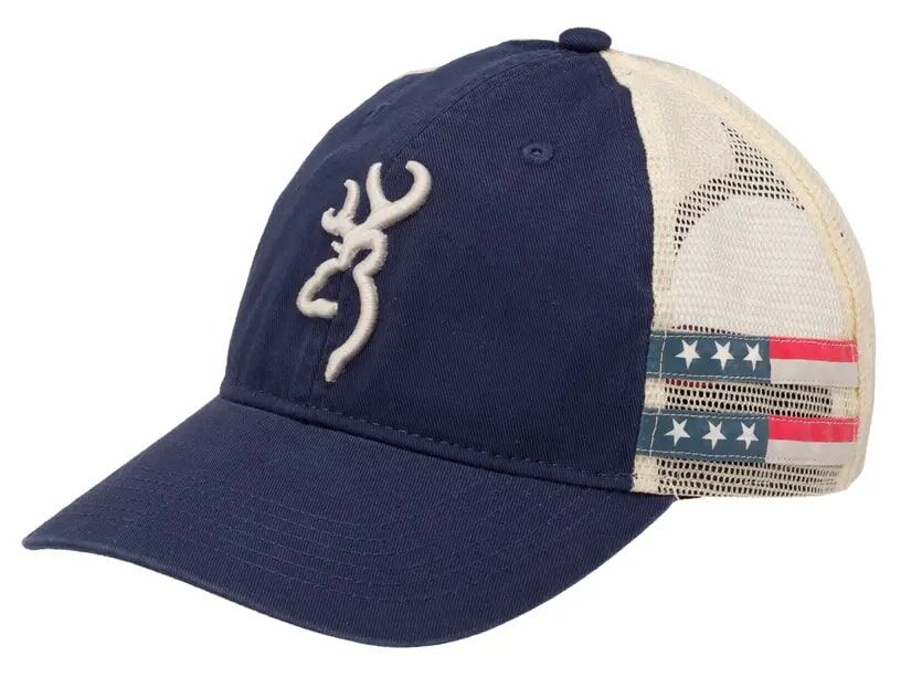 - Raised embroidered Buckmark and stars and stripes side patches.