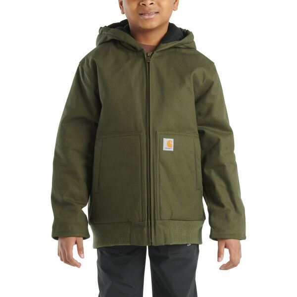 - Hidden rib-knit sleeve cuffs help keep out the cold