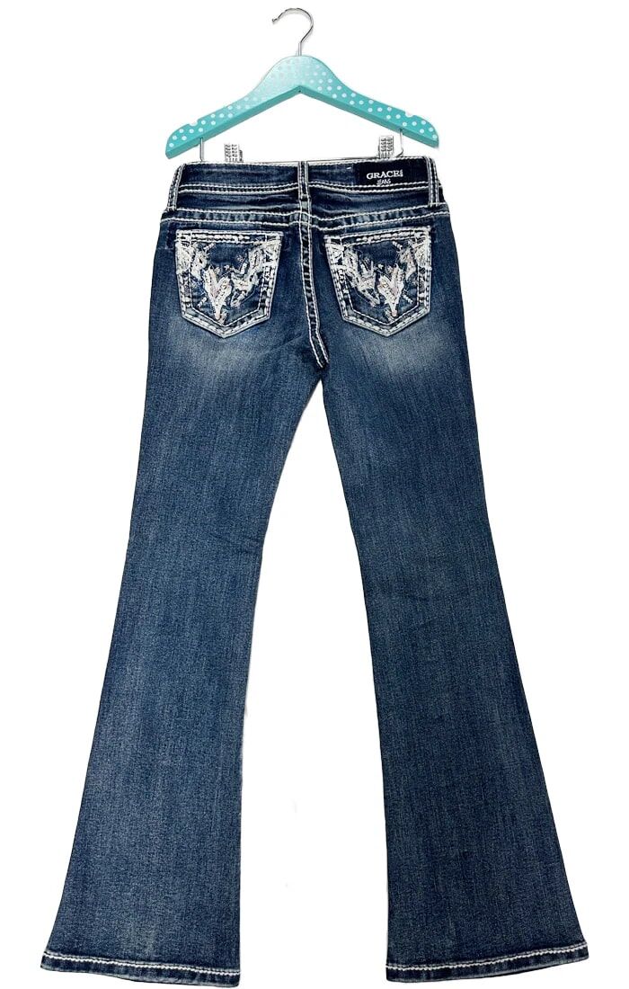 - Grace in LA's junior fit denim is designed to provide both stretch and breathability. These jeans sit right at the waist, creating a flattering low-rise effect. If you want to highlight your curvy hips, Junior Fit is the perfect choice.