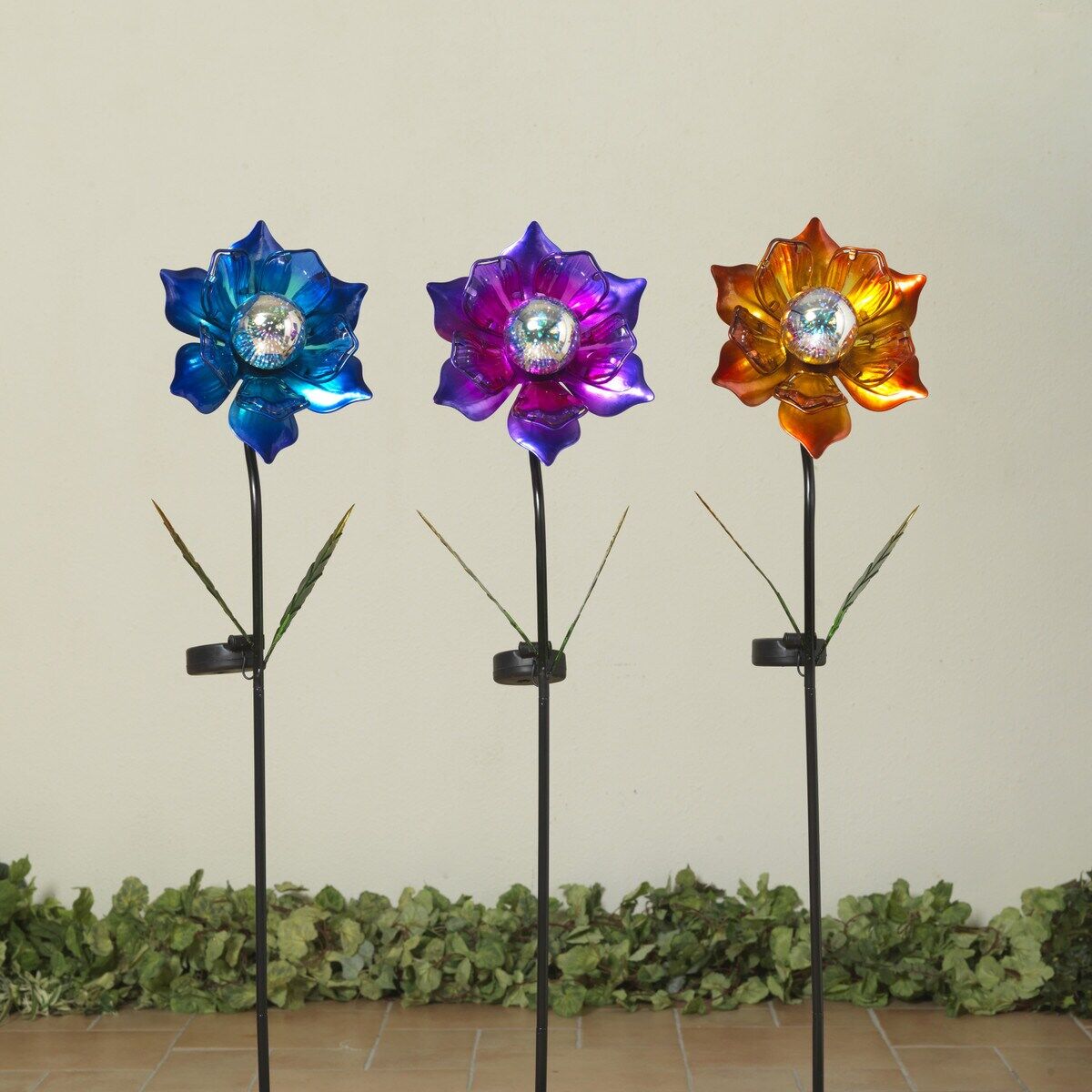 Gerson Solar Lighted Metal Flower Yard Stake With Glazing Glass Ball Assortment, 35-In