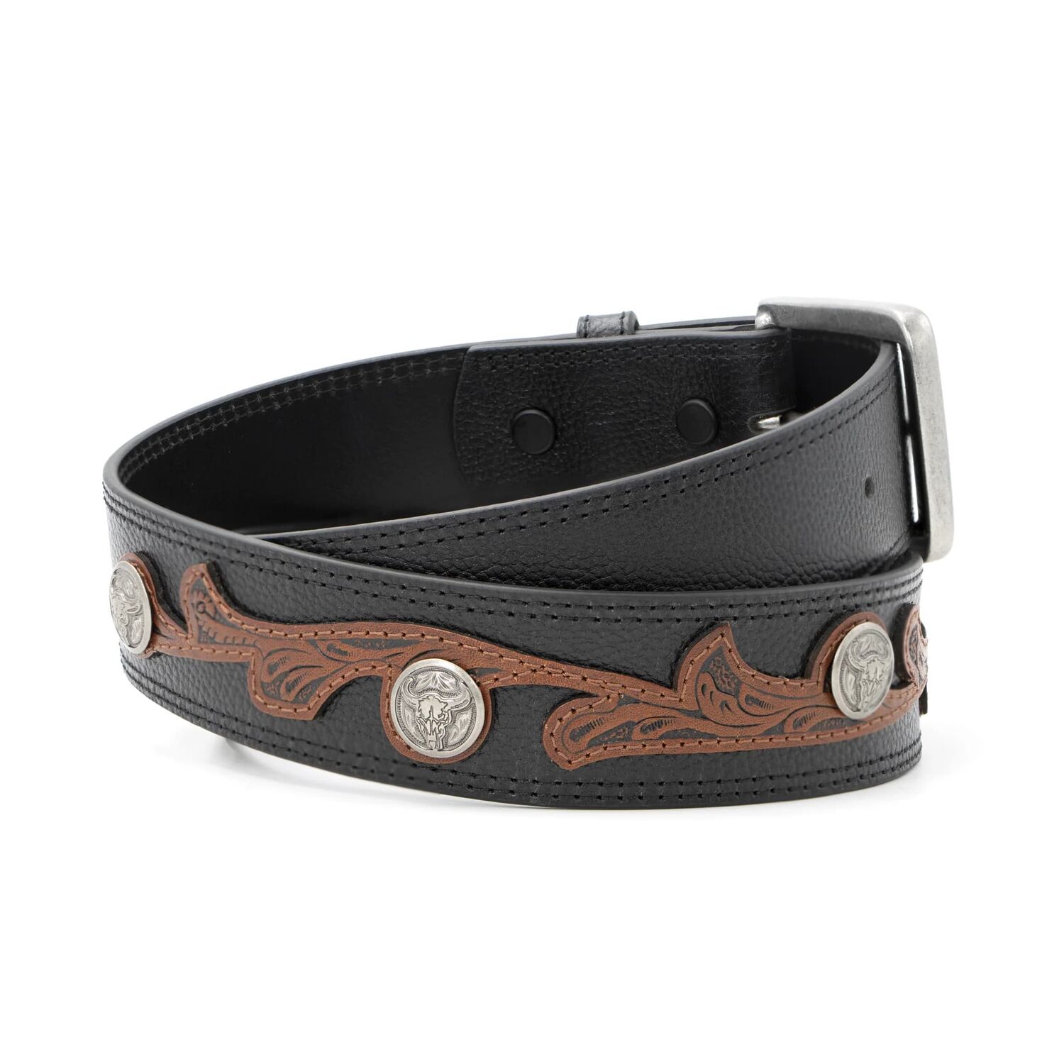 - Two-tone decorative scrolled western belt