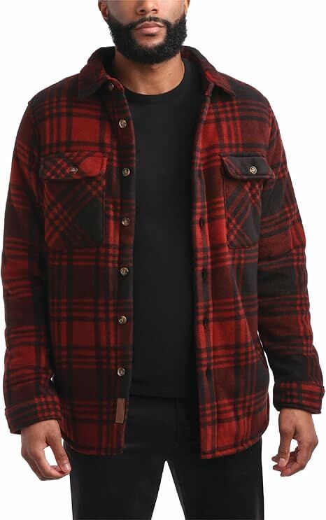 Bass Creek Outfitters Men's Heavy Duty Polar Fleece Sherpa Lined Shirt Jacket