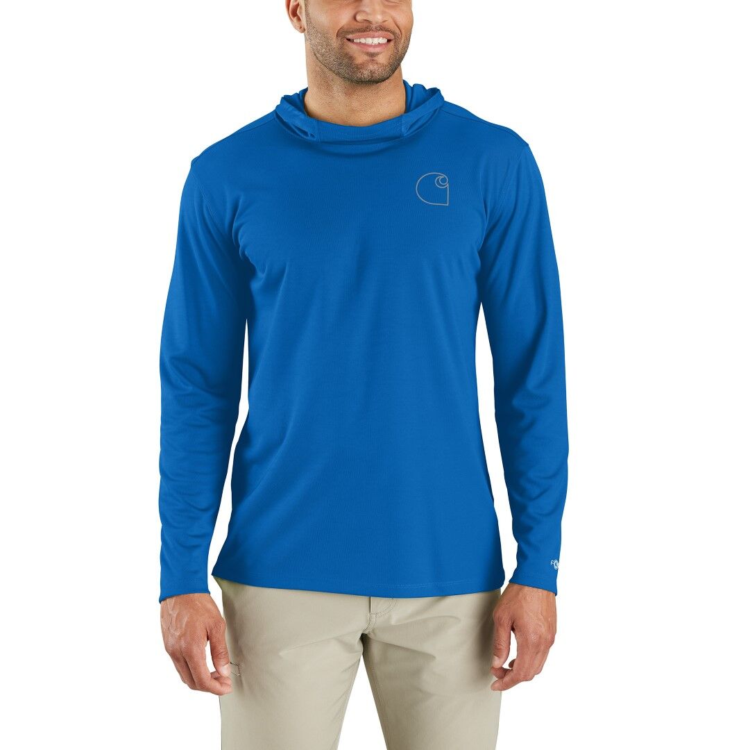 Carhartt Men's Force Sun Defender Lightweight Long Sleeve Hooded Logo Graphic T-Shirt in Beacon Blue