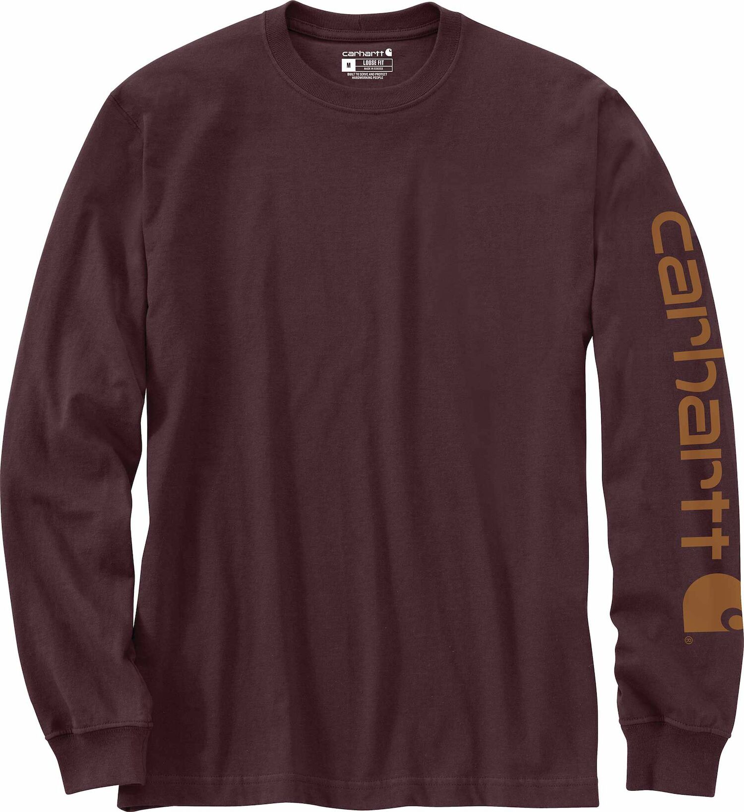 Carhartt Men's Loose Fit Heavyweight Long-Sleeve Logo Sleeve Graphic T-Shirt in Port