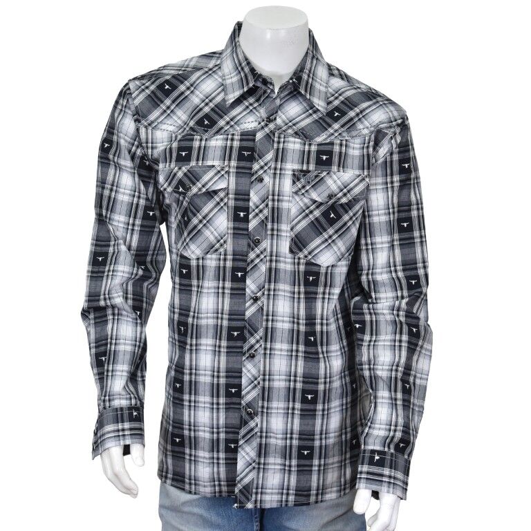 Cowboy Hardware Men's Plaid With Scattered Skulls Long Sleeve Shirt