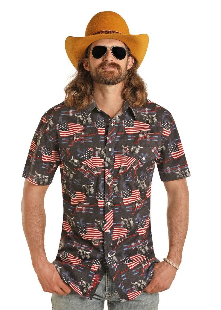 Rock & Roll Denim Men's Dale Brisby Americana Print Short Sleeve Snap Shirt