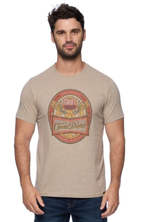 Threadgrit Men's Classic Pilsner T-Shirt in Taupe Heather